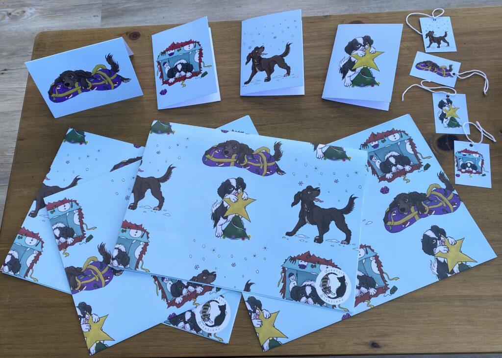 Initial designs were inspired by my own fabulous cats — and Christmas sets were inspired by two dogs I know! Wrapping paper, greetings cards and gift tags are available as an artisan set or in other combinations — or sold separately. I have sold at a number of craft markets/stalls and sell online through Etsy.