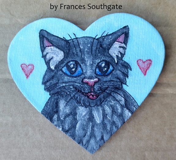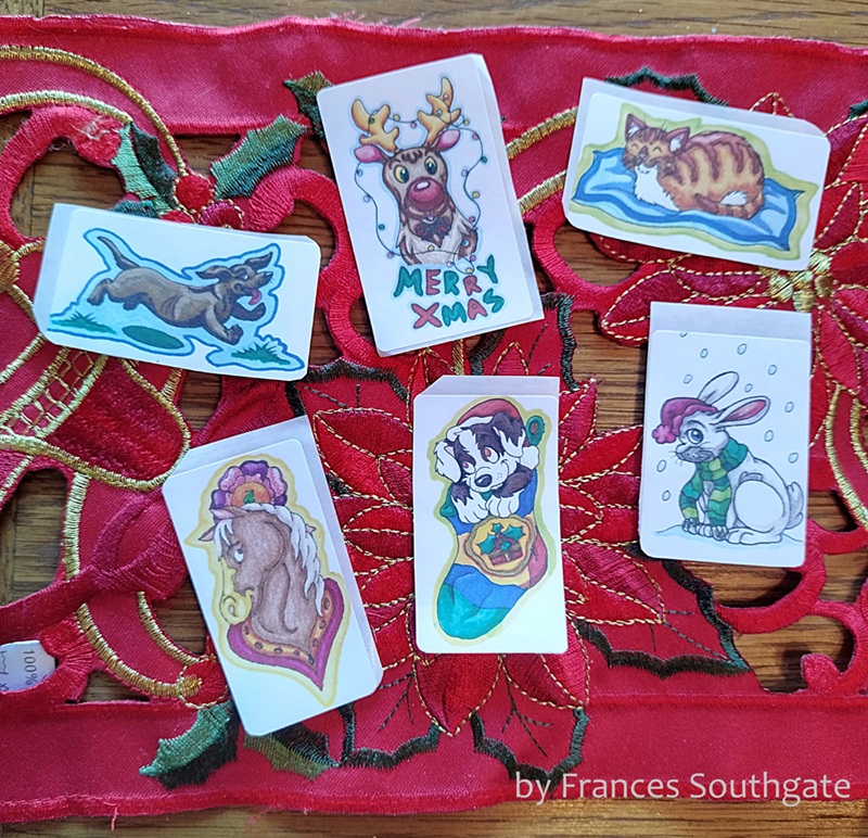 ETSY SHOP: At my online Etsy shop I offer wrapping paper, greetings cards and gift tags based on my wonderful cats — and further Christmas products based on two dogs I know! (Please note: Seasonal stock is off the shopfloor until October.) Buy designs separately or as an artisan set, all very reasonably priced and of great quality and recycling-friendly. Fun, miniature animal canvas paintings are also on offer. Currently posting within the UK only. Prices for cards starting from £2.85!