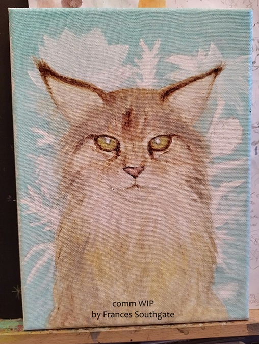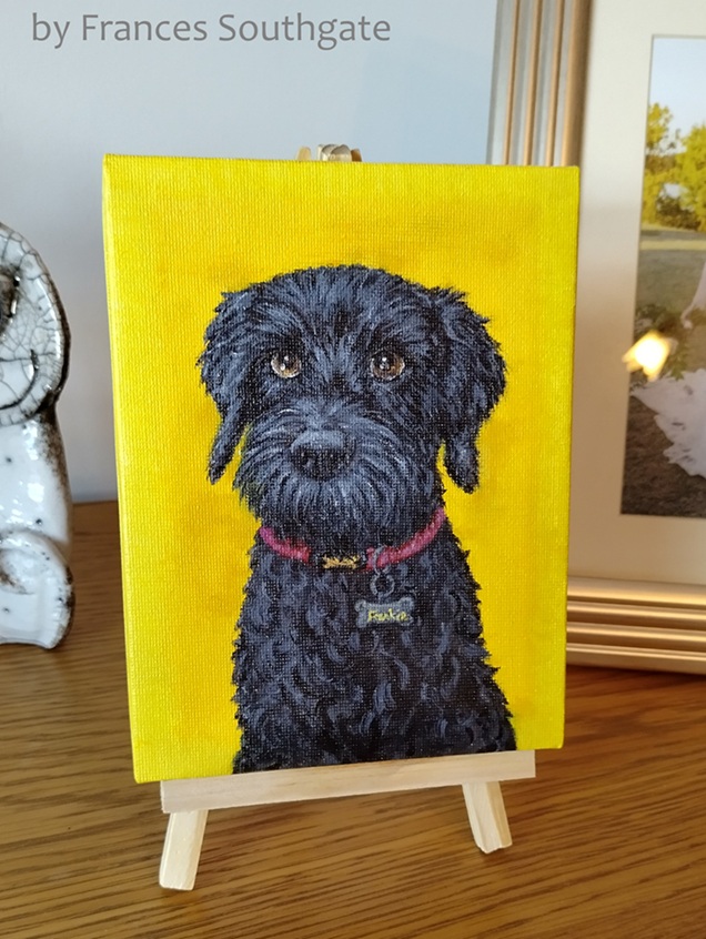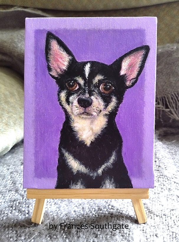 For my commission offering, I currently work with acrylics on varying sizes of stretched canvas, canvas board, or acrylic paper/card for my paintings. However, I also work with other art media, some of which you can see under ‘Artwork’ on the menu. Every piece is created with joy, time and care to have your pet looking just how you want them! Feel free to enquire about sketches or digital work, etc.