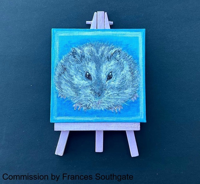 If you are after a personalised piece for yourself or someone else, I offer pet and animal portraits (currently in acrylics) on varying sizes of canvas or canvas board. I can work in a more realistic or more ‘cartoony’ way to suit your requirements, and at very reasonable prices, starting from £12-upwards. I will also create fantasy creatures, humans and more for any age — just ask!